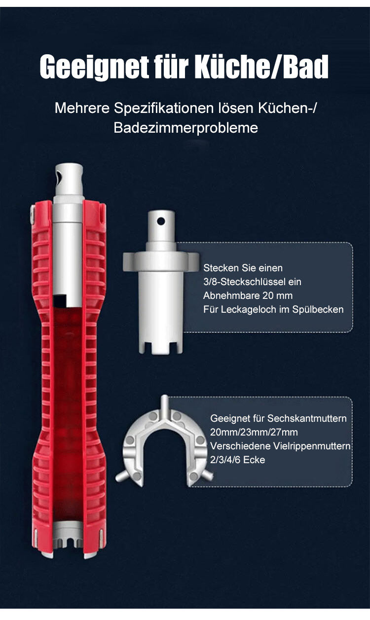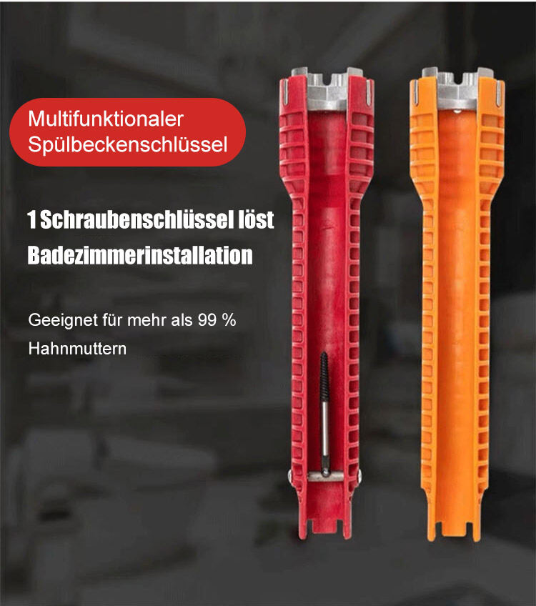 【Multifunktionaler Spülbeckenschlüssel】🔧✨Der 8-in-1 Profi-Schlüssel: Endlich Platz in der engsten Ecke!